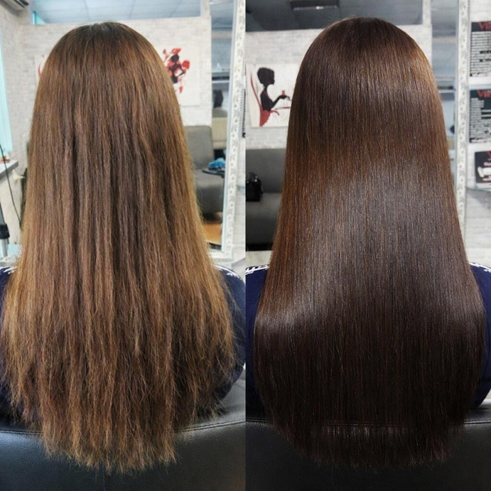 Процедура робить локони здоровішими, гладенькими, більш слухняним та захищає волосся від негативної дії ультрафіолету.